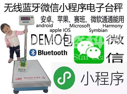 在WeChat微信小程序中連接藍(lán)牙電子計(jì)重秤(電子秤品牌:山星盛MOUNT STAR),直接通過藍(lán)牙獲取當(dāng)前稱重的重量數(shù)據(jù),然后顯示在weixin界面上。山星盛電子科技是一家衡器硬件設(shè)備提供商,我們專業(yè)提供ERP管理系統(tǒng)PC,APP,APK,POS,PDA,安卓The android和蘋果apple手機(jī)IOS及android操作系統(tǒng),電腦端微軟Microsoft安裝版及文本直接傳送的電子秤,平臺(tái)秤,物聯(lián)網(wǎng)電子稱,藍(lán)牙無(wú)線電子秤,WIFI電子秤,手機(jī)軟件直連手機(jī)等稱重設(shè)備,買我們電子秤能提供騰訊微信小程序demo程序開發(fā)包,還能提供安卓和蘋果手機(jī)APP軟件電子秤連接的demo指導(dǎo)文件及開發(fā)包供您開發(fā)自己的軟件。